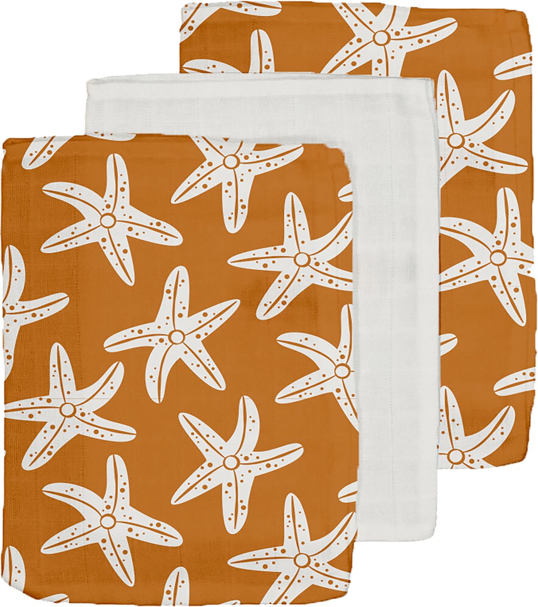Sumérgete en una experiencia creativa y divertida con estos suaves y prácticos washandjes (toallitas) con un adorable diseño de estrellas de mar. Con un tamaño perfecto de 20×15 cm, son ideales para las manos pequeñas, ¡y también para el cuidado de la piel más sensible de tus hijos! 🌊