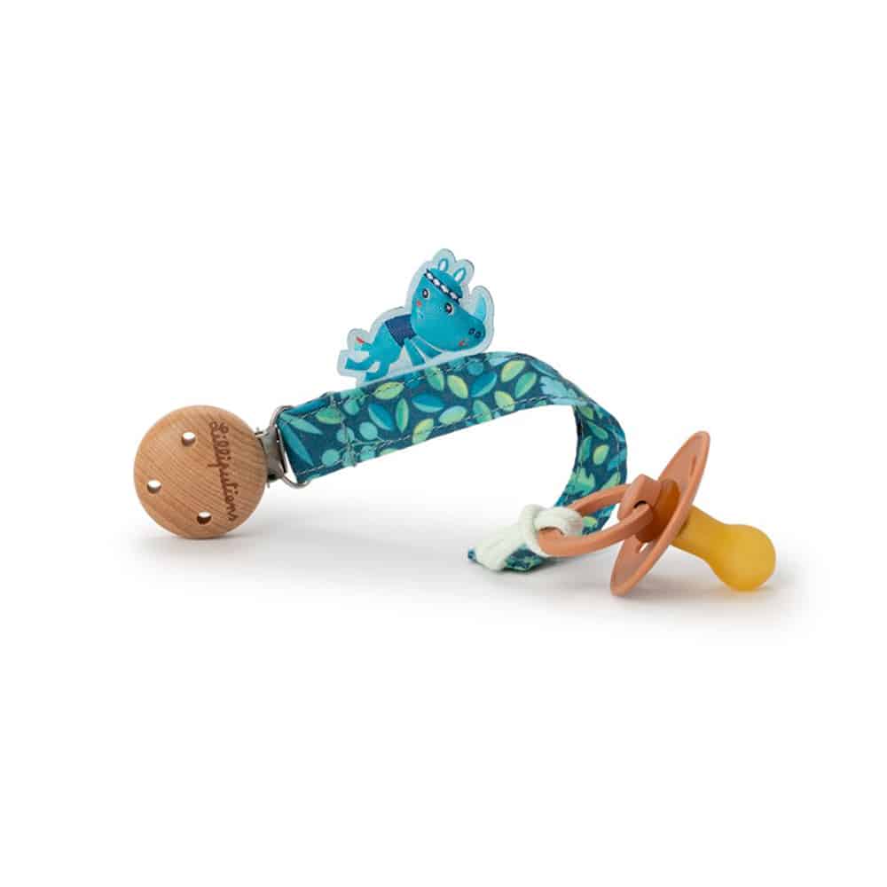 ¡Conoce a Marius, el rinoceronte más simpático del mundo chupetero! Este sujetachupete no solo mantiene el chupete siempre a mano (y lejos del suelo), sino que además lo hace con mucho estilo y una sonrisa de oreja a oreja. Fabricado con algodón orgánico y una pinza de madera, es suave, seguro y totalmente adorable.