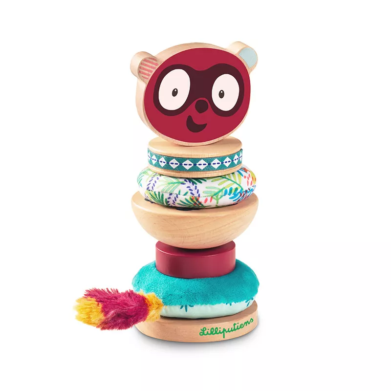 Su diseño combina piezas de madera con anillos blanditos y estampados llenos de color, perfectos para que peques desde temprana edad experimenten con formas, pesos, texturas y equilibrio. Además, ¡la cabecita de Georges y su colita peluda añaden ese toque de ternura irresistible! 😍